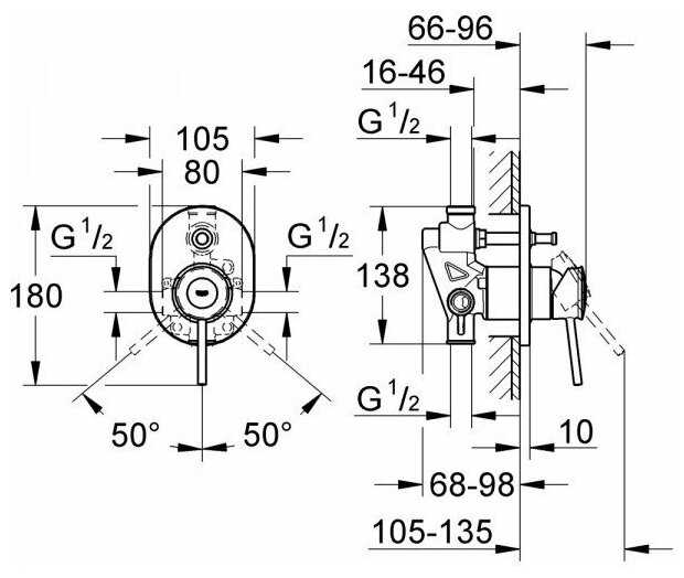 Характеристи Grohe BauClassic 29047000+32963000, рычажный