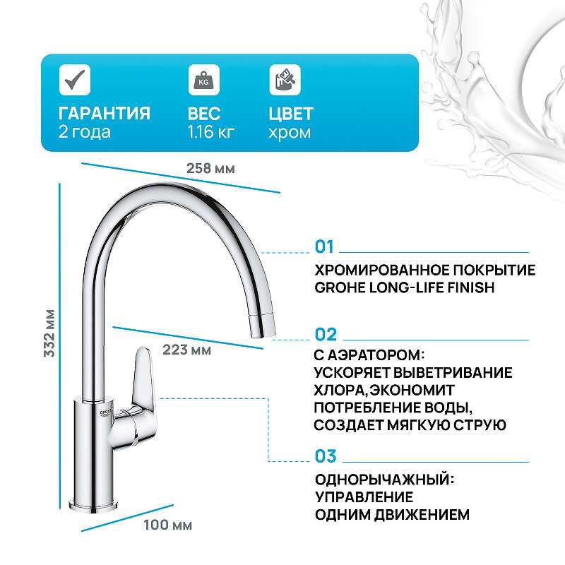 Отзывы о Смеситель Grohe BauCurve (31231001)