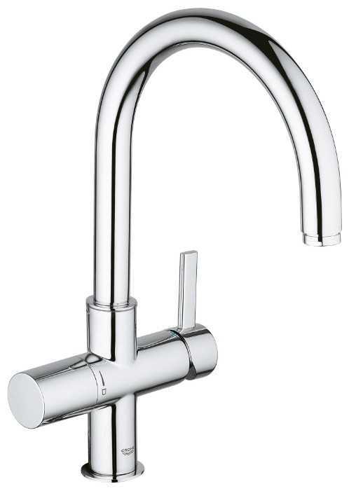 - + Выглядит надежно, очень удобные ручки, струя воды довольно ровная, не брызгает, есть возможность подключения различного вида фильтров для воды, но в первую очередь конечно фирменных - Grohe, он же BWT.