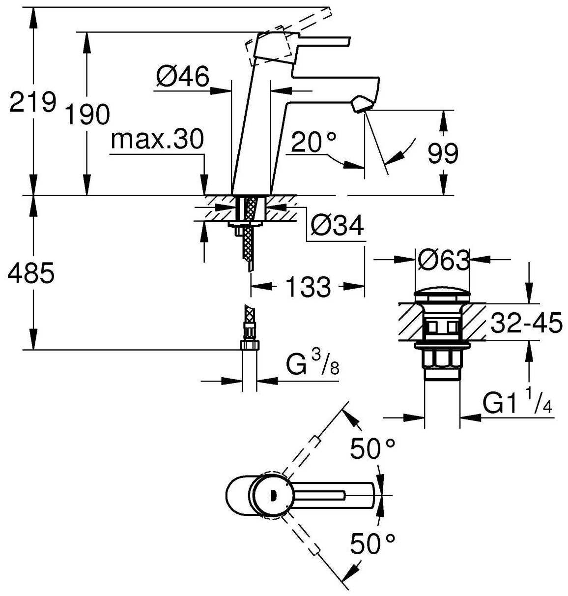 Характеристи Grohe Concetto 23932001, рычажный