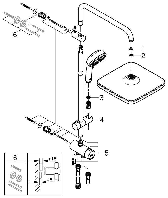 | Комплектация : | верхний душ, держатель лейки, душевая стойка, душевая штанга, кронштейн, кронштейн для верхнего душа, лейка, настенный держатель, подводка гибкая, ручной душ, смеситель, шланг |
