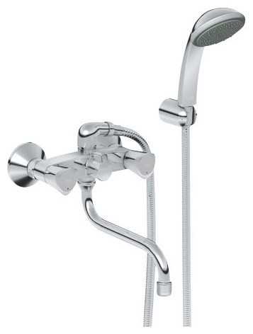 - + Самый удачный из двухручковых универсальных смесителей, обеспечивающих подачу воды в раковину и ванну.