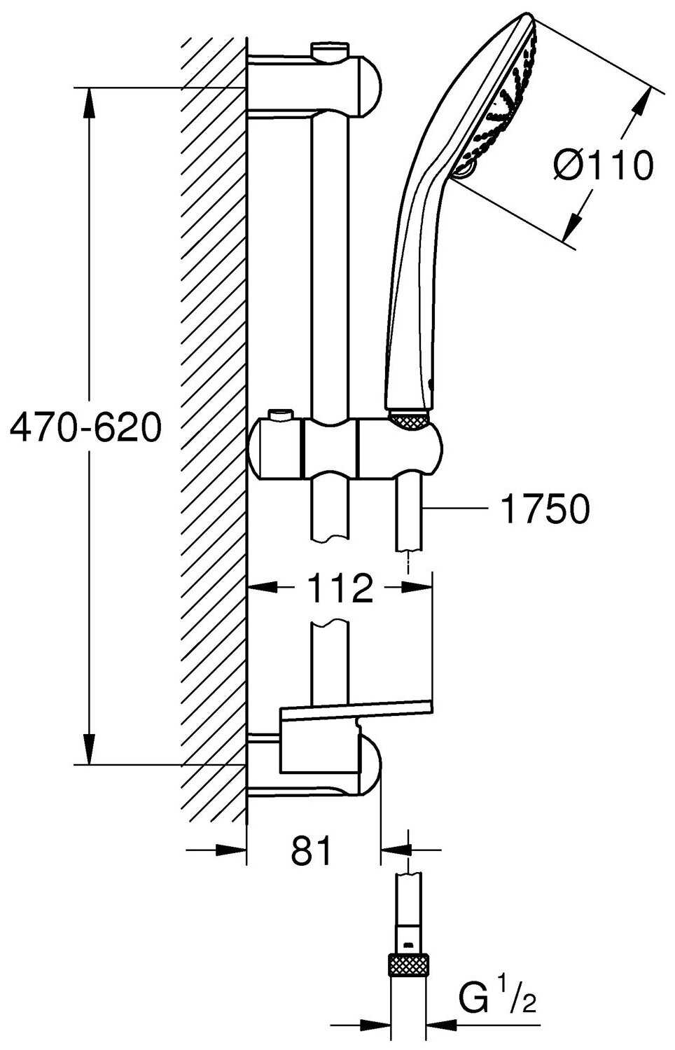 | Дополнительная информация : | высота стойки для душа: 600 мм, диаметр душевой лейки: 110 мм |