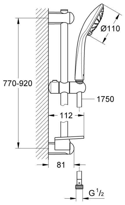 | Дополнительная информация : | высота стойки для душа: 920 мм, диаметр душевой лейки: 110 мм |
