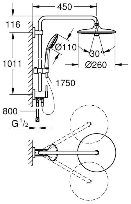 | Форма верхнего душа : | круглая |
