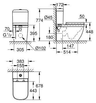 - + совсем бесшумный набор воды, хорошая арматура, малый расход воды, комплект с ободком