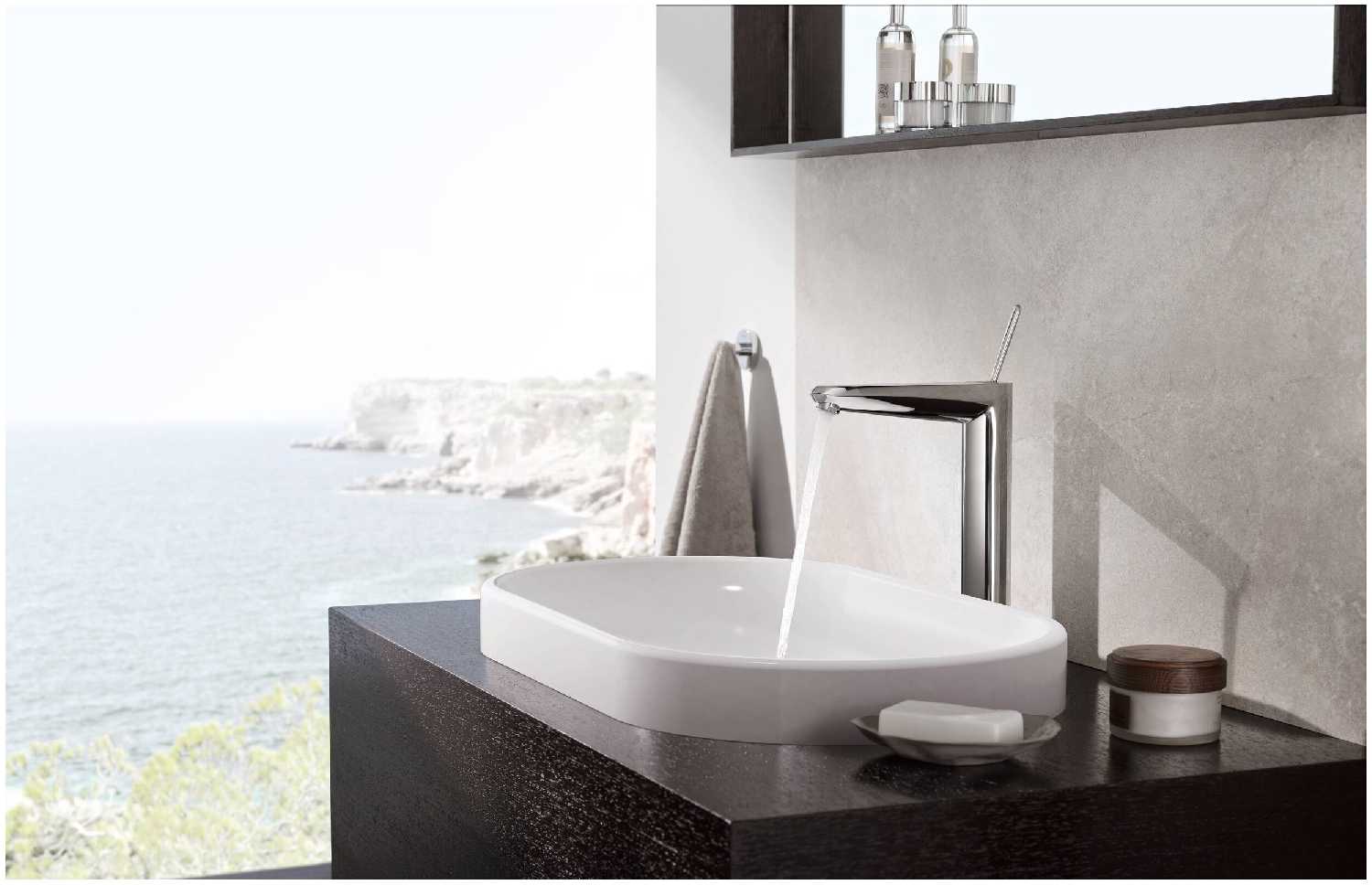 Очень классный, стильный. Искали именно высокий смеситель для накладной раковины...
