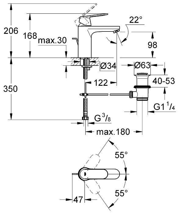 | Особенности : | S-образные эксцентрики, аэратор, донный клапан, защита от обратного потока |