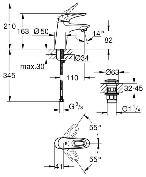 Характеристи Grohe Eurostyle 23929003, рычажный