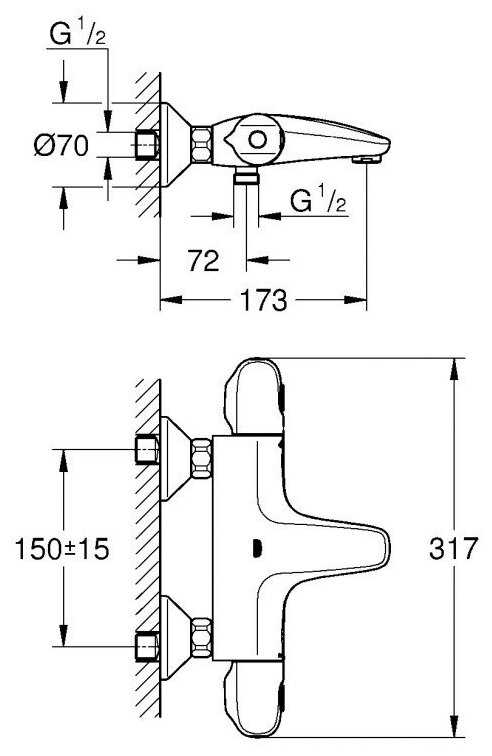 Характеристи Grohe Grohtherm 1000 34155003, рычажный