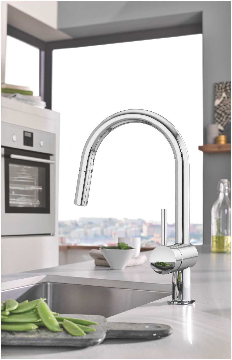 Долго и пристально выбирал смеситель на кухню между несколькими европейскими производителями. Остановились на этой модели, т. к., во-первых, у неё отличный и стильный внешний вид (коллекции других производителей мне не понравились внешне - либо были слишком вычурными, либо не подходили по стилю к нашей кухне), во-вторых, хотелось иметь выдвижную лейку (удобно ополаскивать раковину после мытья посуды: главное включить напор побольше и переключить на режим лейки). Ну и, разумеется, качество: Grohe - есть Grohe, к тому же кухонные смесители у них собираются в Португалии. Все детали очень аккуратно упакованы. Монтаж занял минут 15. Инструкция и ключ - в комплекте. Изначально были сомнения - не слишком ли уж толстый смеситель. Ответ - нет. То, что надо: бросается в глаза,...