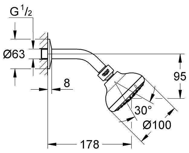 | Комплектация : | верхний душ, кронштейн |