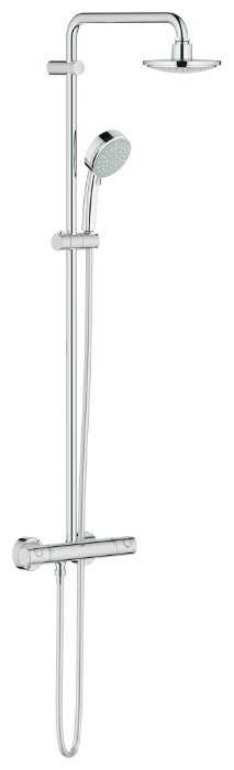 | Дополнительная информация : | высота стойки для душа: 1132 мм, диаметр душевой лейки: 100 мм, диаметр верхнего душа: 160 мм, вылет душевого кронштейна: 400 мм, регулируется по высоте с помощью скользящего элемента, совместим с проточным водонагревателем только выше 18 кВ/ч а также с накопительным водонагревателем |
