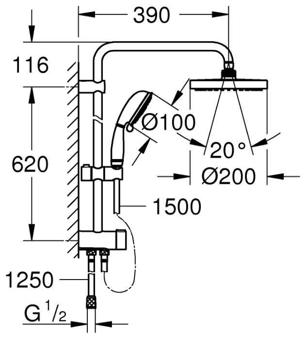 | Особенности : | антиизвестковое покрытие, держатель душевой лейки, защита от обратного потока, защита от скручивания, регулируемый верхний душ, система быстрого монтажа |