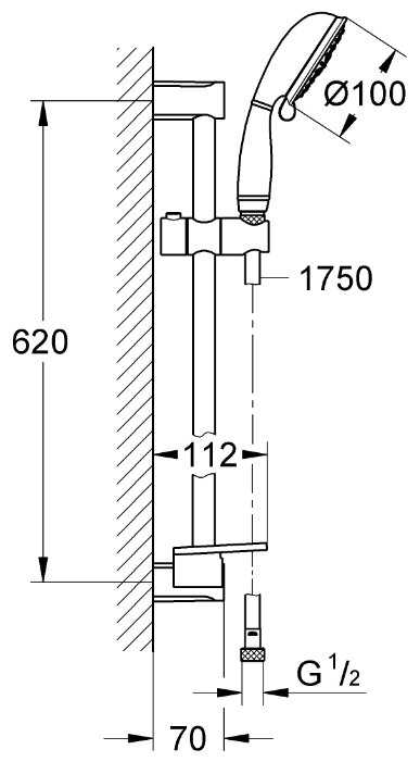 | Дополнительная информация : | высота стойки для душа: 620 мм, диаметр душевой лейки: 100 мм |