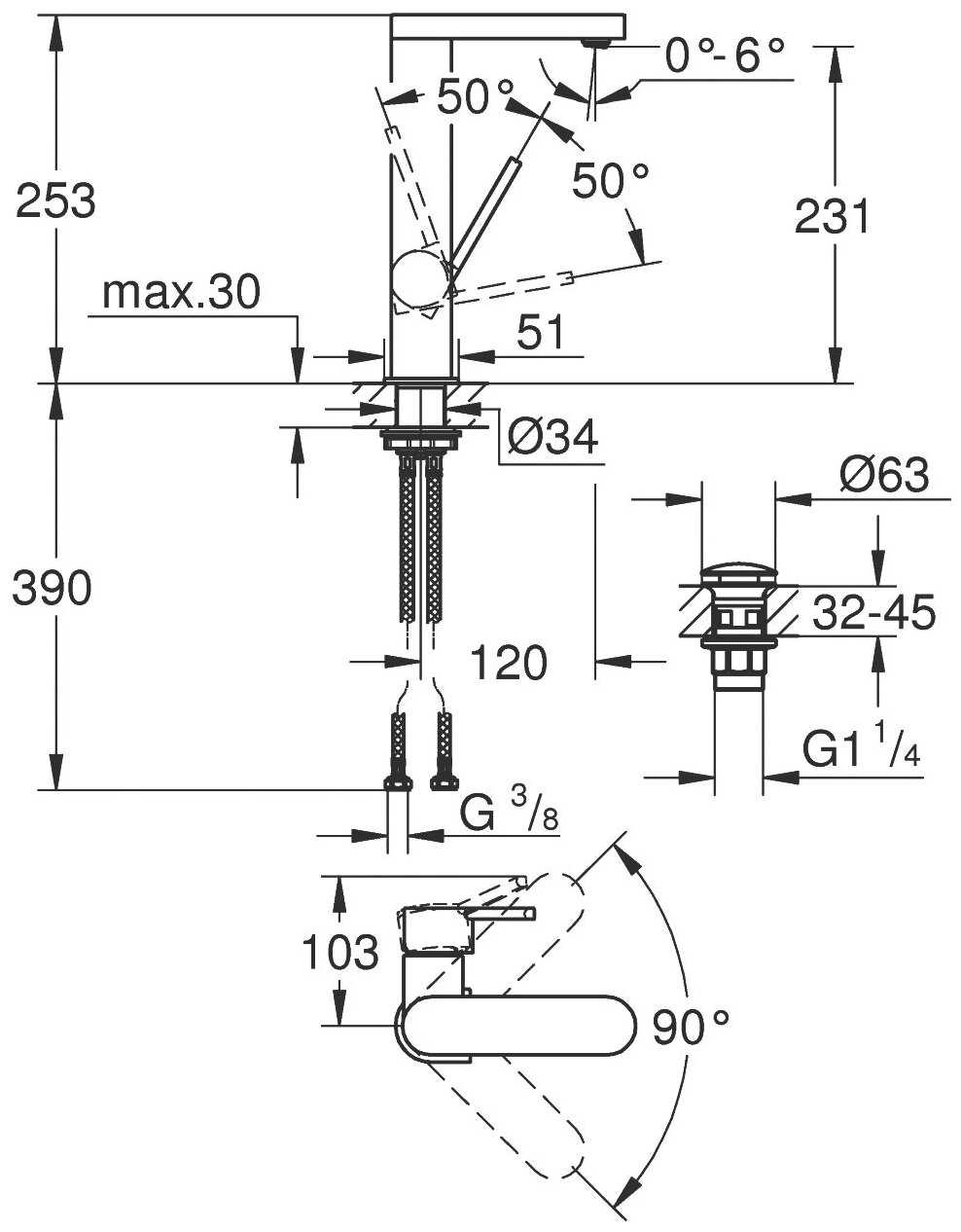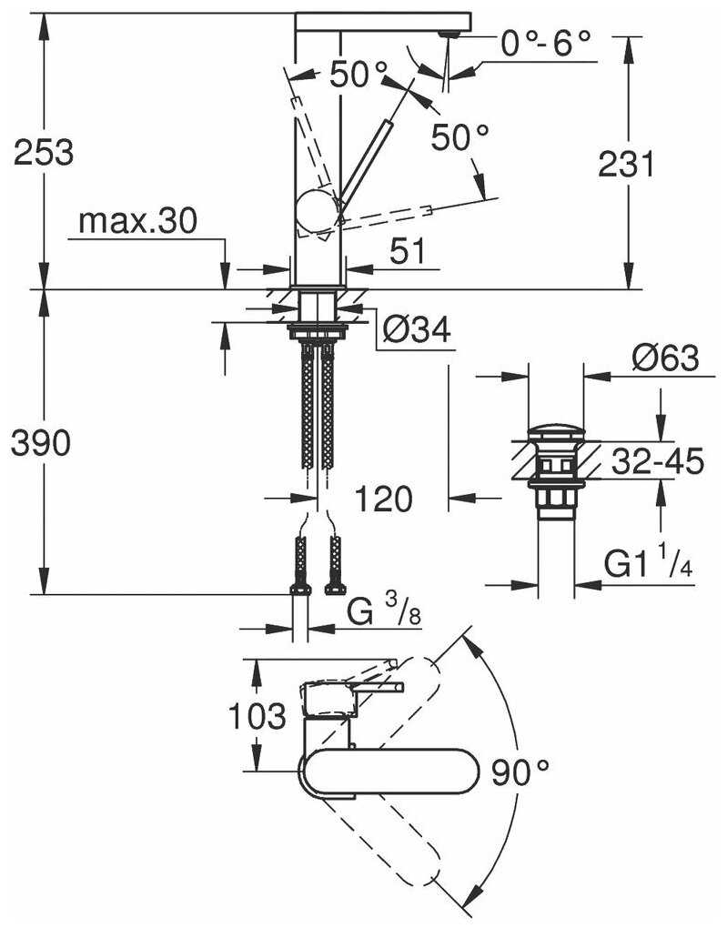 Характеристи Grohe Plus 23873003, рычажный