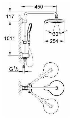 | Дополнительная информация : | высота стойки для душа: 1128 мм, диаметр душевой лейки: 115 мм |