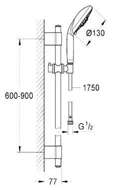 | Дополнительная информация : | высота стойки для душа: 900 мм, диаметр душевой лейки: 130 мм |