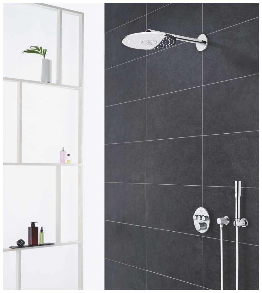 | Дополнительная информация : | душевой кронштейн 400 мм, верхний душ с двумя режимами струи: GROHE PureRain, GROHE ActiveRain |