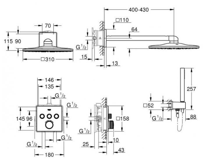 | Дополнительная информация : | длина верхнего душа: 310 мм, ширина верхнего душа: 310 мм |