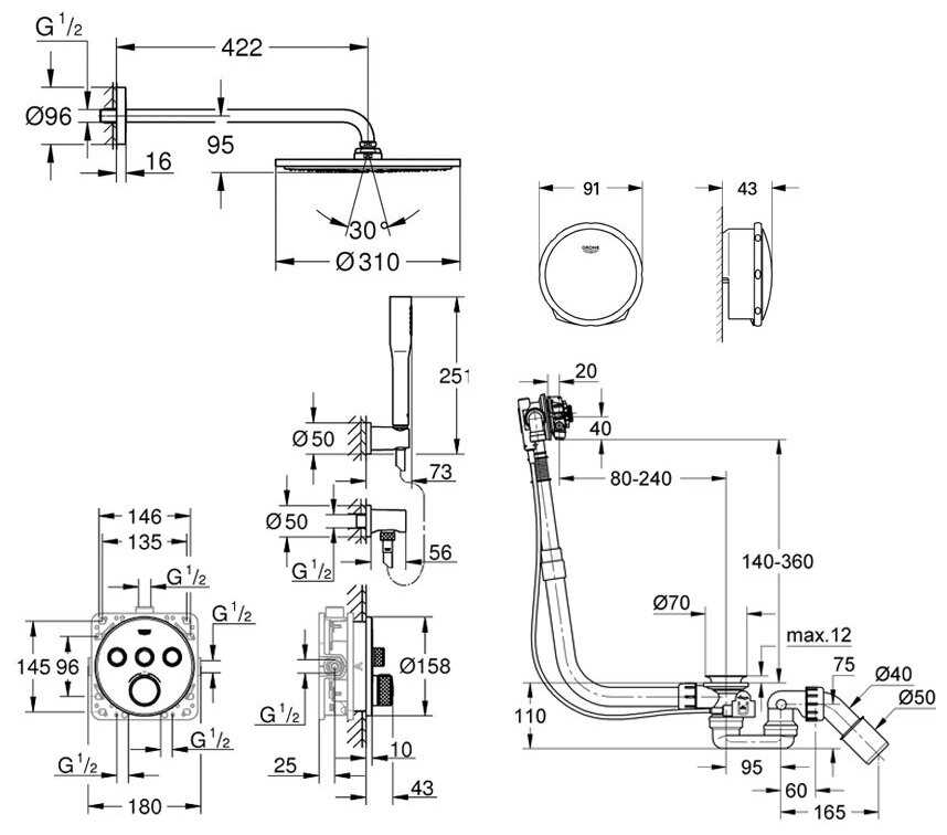 Характеристи Grohe SmartControl (SET152) с наполнением через перелив, хром