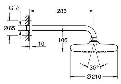 | Дополнительная информация : | Вылет верхнего душа - 286, Гарантия - 5 лет, Страна - Германия, Поверхность - глянцевая |