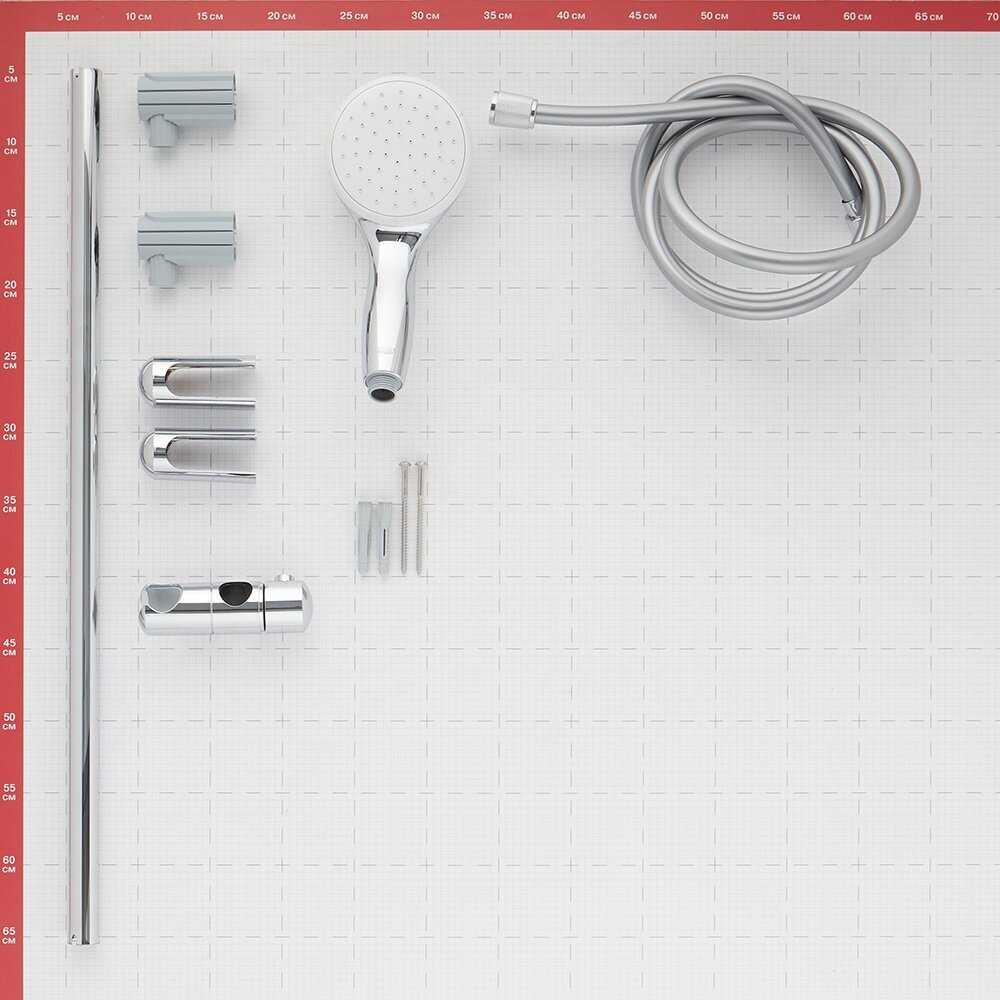 - + Отличного качества душевая стойка и лейка. В лейке 4 режима, которые можно комбинировать. Шланг Длинный и немного жестковат, но это не критично. В монтаже очень просто.