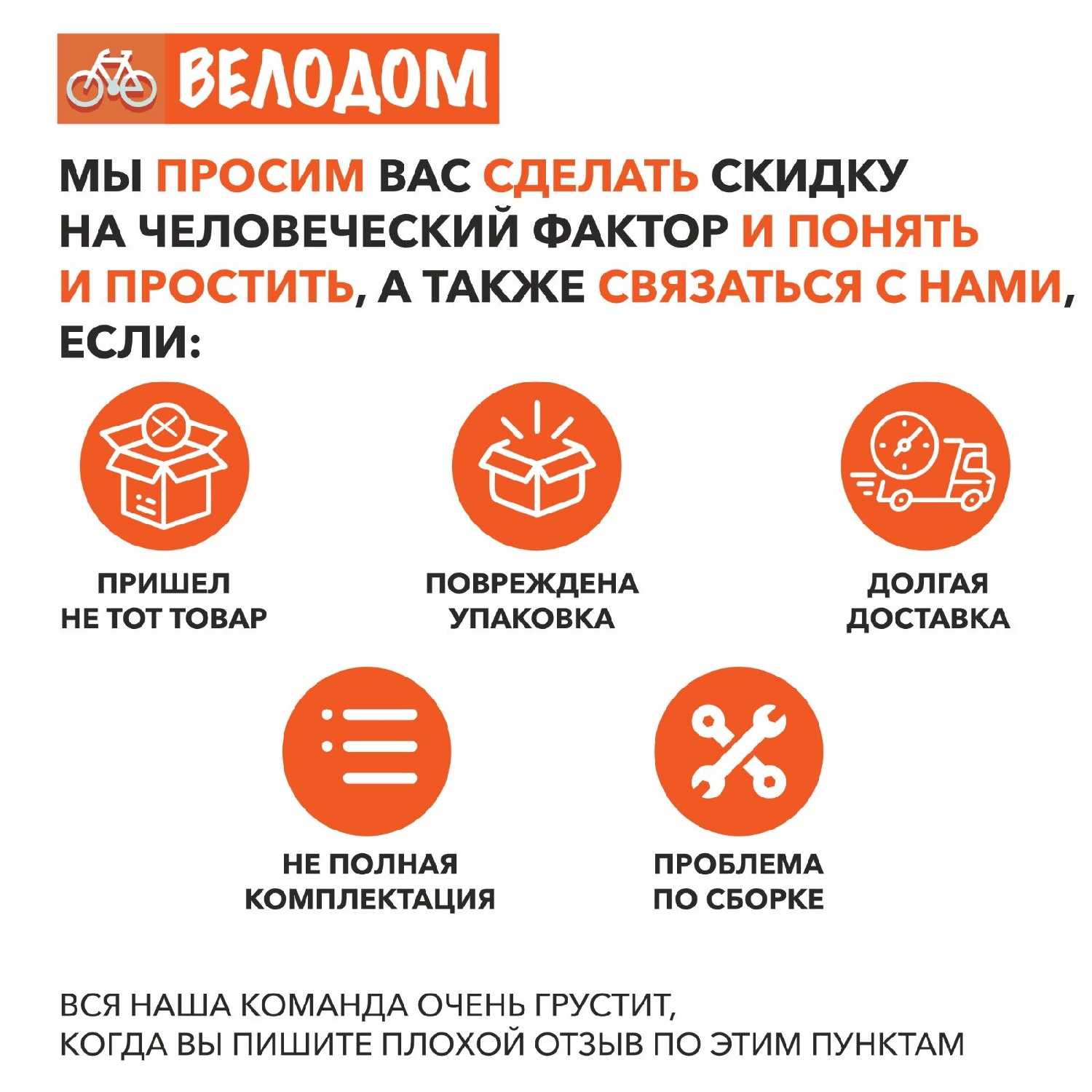 Велик приехал в собраном состоянии и все крепления пришлось подкручивать самим. Итак, неделю езды на велике, обнаружилось: педаль откручивается сама по себе, так как заводской брак. При легком торможении покрышки быстро износились. Спицы не затануты шатунами, пришлось отвозить в ремонт для диагностики и устранению изъянов. Некачественный материал крыльев, которые не спают от дождя и грязи и отвались через две поездки. Сплошные минусы, не рекомендую, по крайней мере, этот велосипед к покупке.
