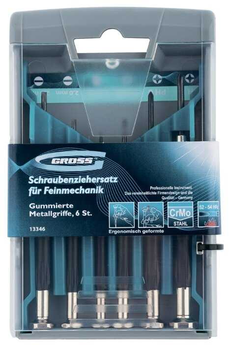 Чудес ждать не стоит, хоть это и Гросс. Отвёрточки только для тонких работ. Пробовал крутить клеммные колодки самой крупной (другой отвёртки не было под рукой) - резиновая ручка прокручивается. Кромка отвёртки пошла немного винтом. Усилие прикладывал не сказать, что чрезмерное. Обычное усилие, которым затягивают клеммную колодку с 1.5мм жилой. Кстати, после этого принёс нормальную отвёртку и закрутил ещё на пол-оборота. Вывод - нечего крутить клеммники часовыми отвёртками)