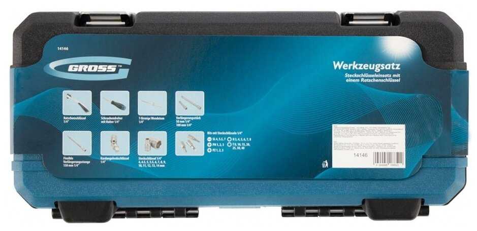 | Дополнительная информация : | трещотка 1/4" 120 зубьев с реверсом, кардан 1/4", вороток Т-образный 1/4", удлинители: 50мм 100мм гибкий удленитель 1/4", отвертка держатель 1/4" |