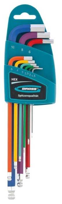 Не перестаю удивляться продуманности инструмента Gross. Цветовая маркировка позволяет использовать ключи не задумываясь о размере, все происходит автоматически через некоторое время использования. Ключи имеют три неоспоримых преимущества. Во-первых они длиннее всех имеющихся аналогичных наборов, во-вторых они очень прочные и выдерживают сверхсильные нагрузки, начинает гнуться и ломаться крепеж, а не данный ключ, в-третьих на шарнирных наконечниках сильный магнит, который качественно придерживает крепеж.