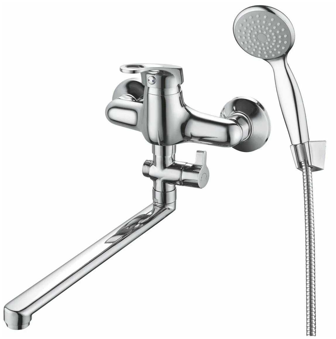 | @Комплектация : | излив - 1 шт., S-образный G1/2xG3/4 эксцентрик - 2 шт., декоративные чашки - 2 шт., уплотнительные прокладки - 2 шт., шланг для душа - 1 шт., лейка для душа - 1 шт., держатель настенный для лейки с комплектом крепежа - 1 шт., инструкция по установке с гарантийным талоном - 1 шт. |