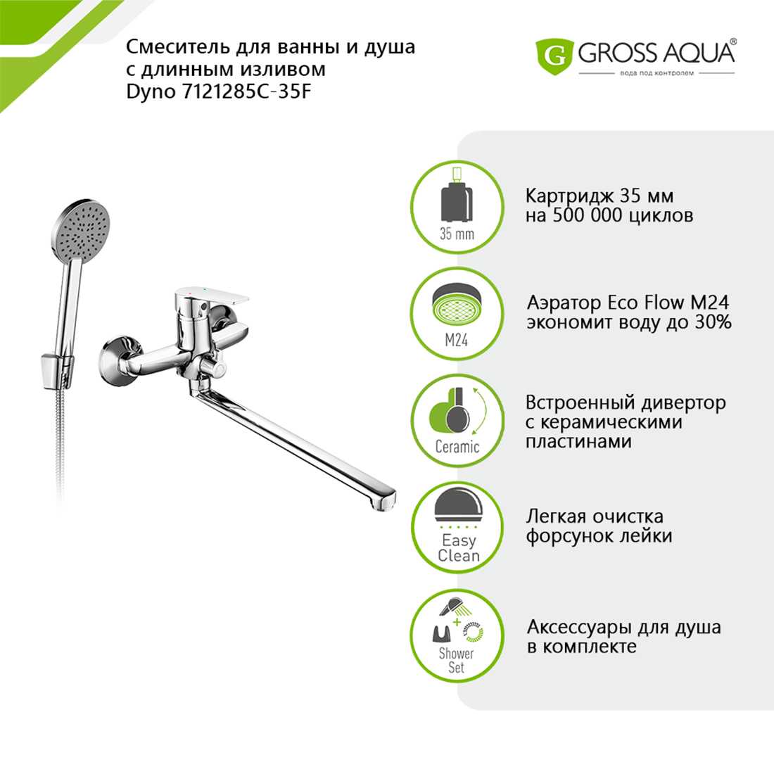 Хороший качественный смеситель , установила быстро, работает идеально, ничего нигде не течет. Стильно смотрится , дизайн лейки интересный, но поначалу показалась мелкой и хотела заменить, но в итоге оказалось то, что надо, оставила ее. Нравится эта фирма, хорошие смесители, на кухне тоже gross aqua и очень им довольна , поэтому в ванную новый взяла тоже этого бренда.