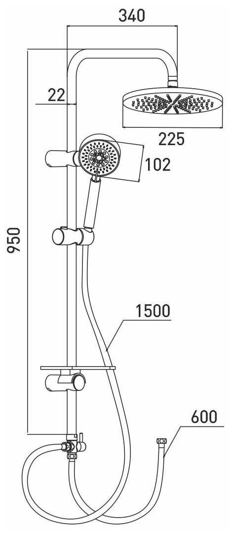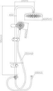 Дополнительная информация : | высота стойки для душа: 950 мм, диаметр душевой лейки: 102 мм, диаметр верхнего душа: 225 мм |