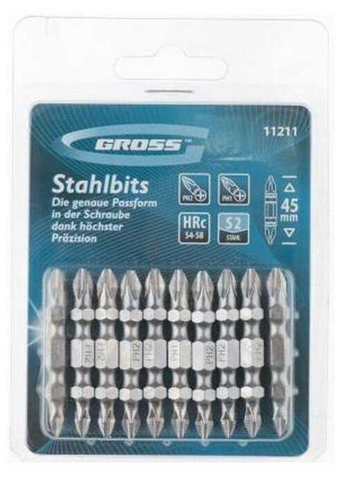 | Дополнительная информация : | биты двусторонние РН2-РН1х45 мм - 10 шт |