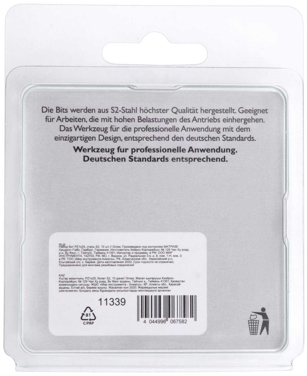Дополнительная информация : | биты PZ1x25 мм - 10 шт |