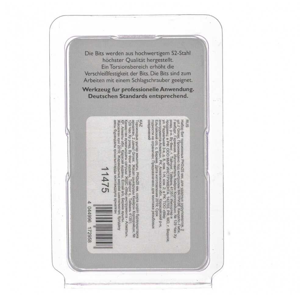 Биты подробно : | PH2 x 25 мм с магнитным наконечником |