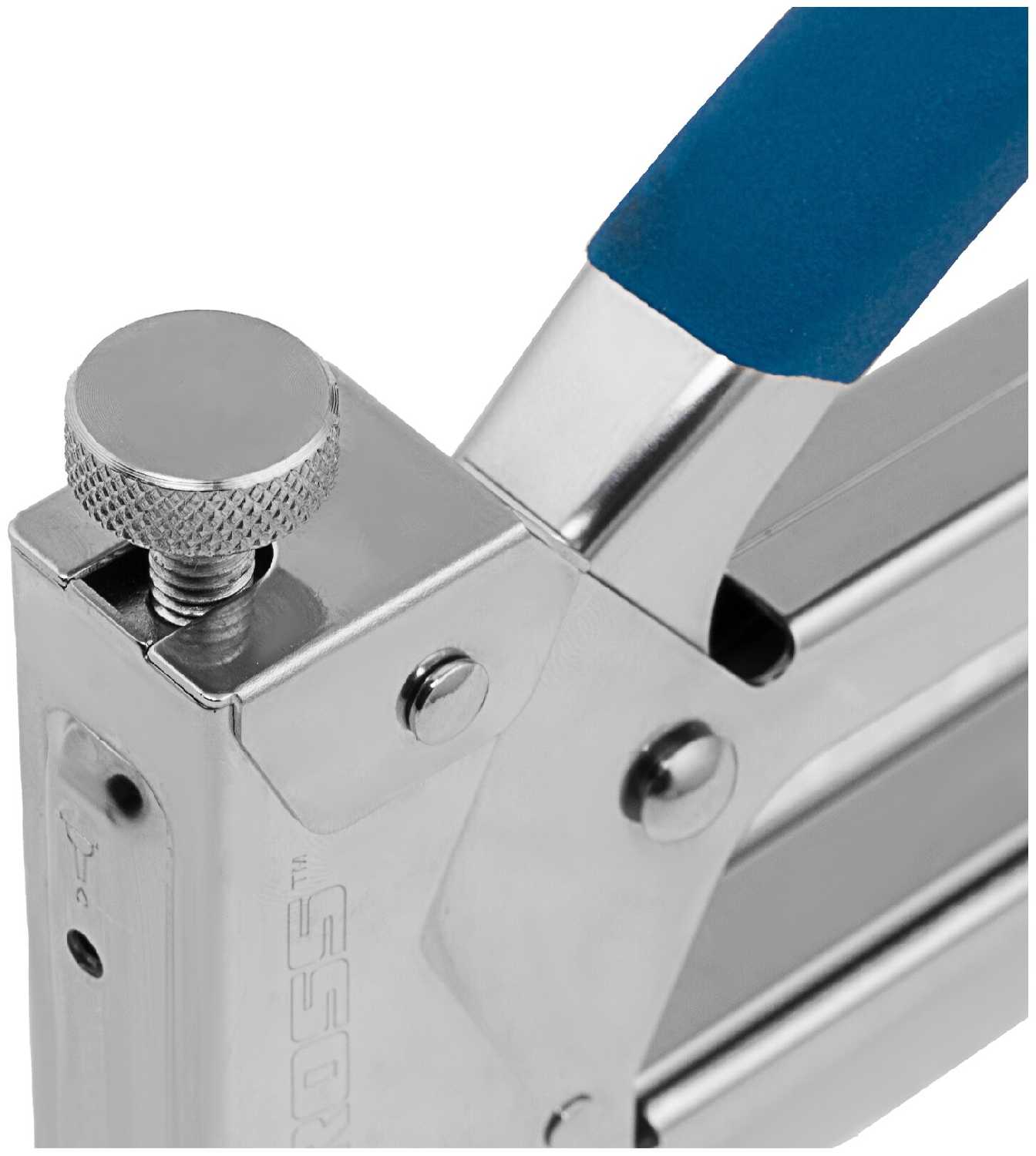 Винт регулировки изменяет степень сжатия ударной пружины, но его эффективность ограничена. При полном закручивании скобы 8-10 мм уверенно входят в сосну, однако для 14 мм даже максимальная настройка не гарантирует полного погружения в плотные материалы. Некоторые пользователи отмечают незначительную разницу между крайними положениями регулятора. -