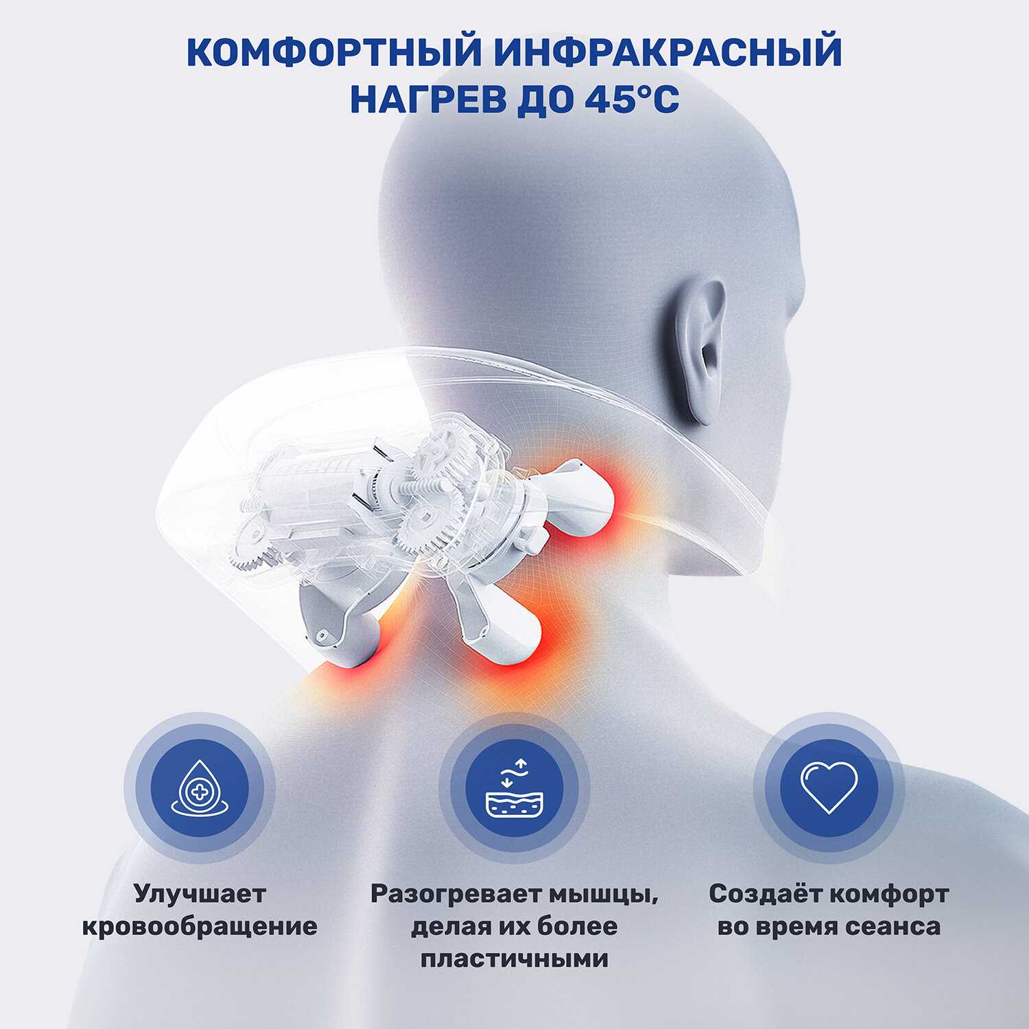 Инфракрасный нагрев включается отдельной кнопкой и постепенно прогревает ткани, но для ощутимого эффекта требуется 7–10 минут на одной зоне. Пользователи подчеркивают, что тепло усиливает расслабление, снимает мышечные зажимы и особенно ценится при болях в шее или спине. Однако некоторые отмечают, что интенсивность нагрева умеренная и не всегда чувствуется сразу. -