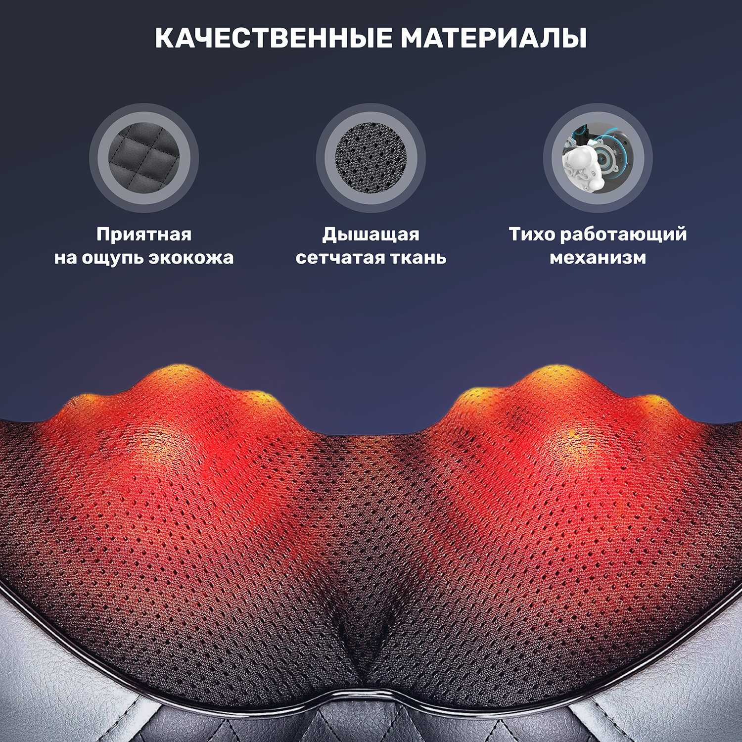 Инфракрасный нагрев включается отдельной кнопкой и постепенно прогревает ткани, но для ощутимого эффекта требуется 7–10 минут на одной зоне. Пользователи подчеркивают, что тепло усиливает расслабление, снимает мышечные зажимы и особенно ценится при болях в шее или спине. Однако некоторые отмечают, что интенсивность нагрева умеренная и не всегда чувствуется сразу. -