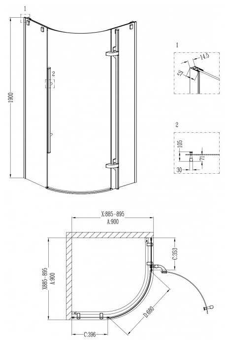 Характеристи Grossman GR-5090 средний поддон 90см*90см