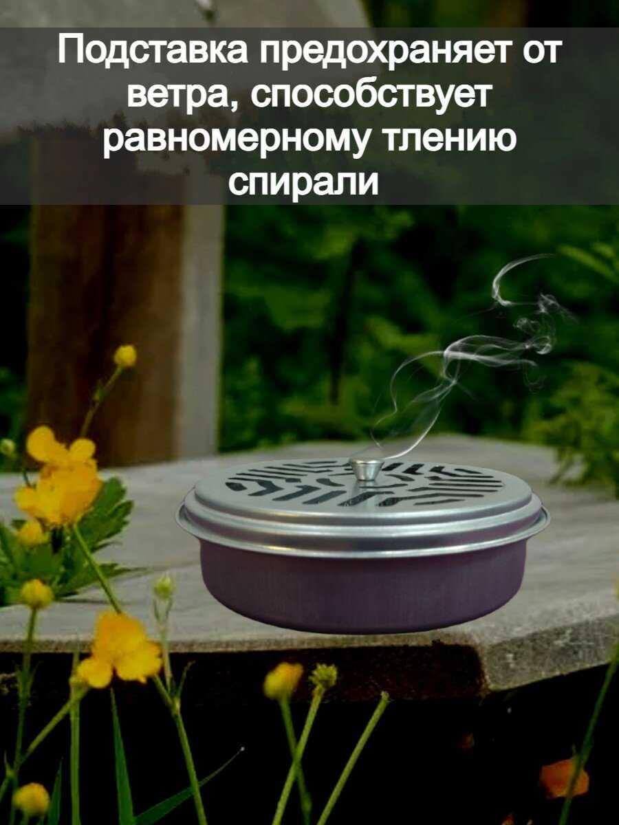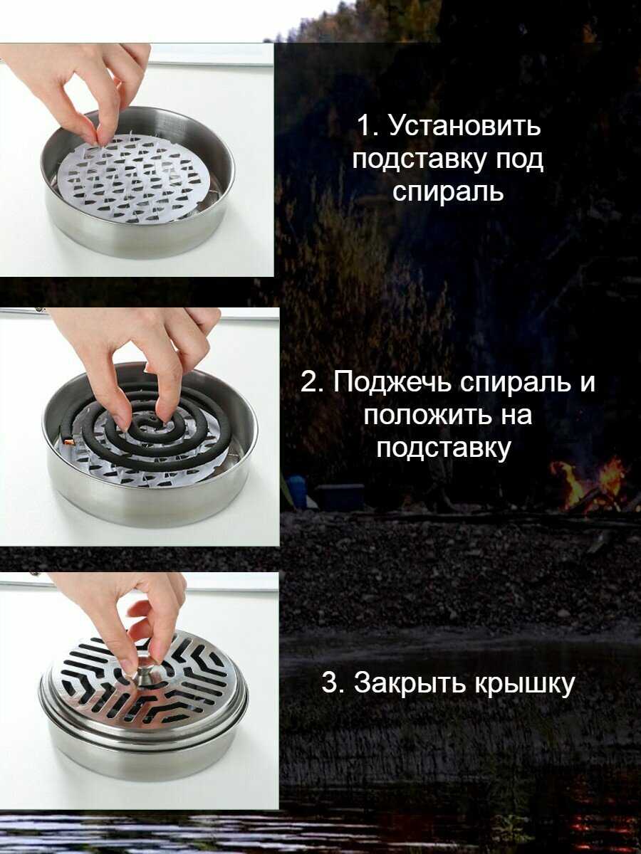 | Способ применения : | Положите тлеющую спираль внутрь подставки на специальную поверхность шипами вверх и закроете крышку |