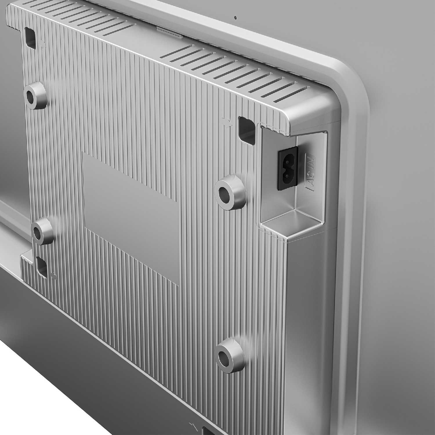 - Толщина корпуса — 48 мм, вес — 4.2 кг, что позволяет крепить его на стену с помощью VESA 200×200.