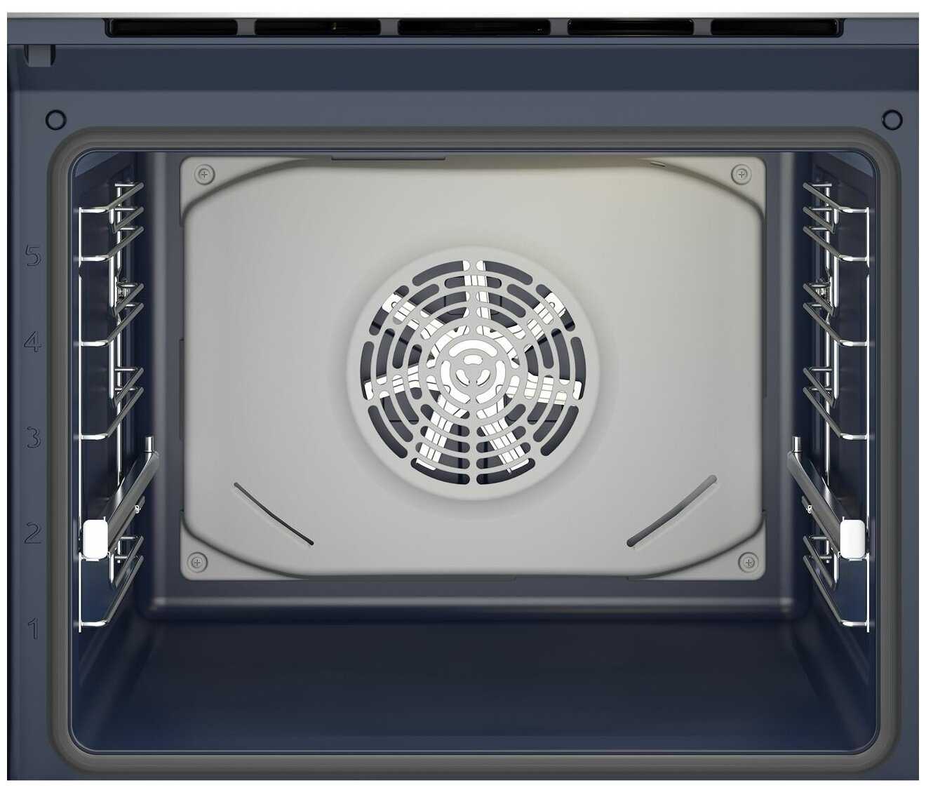 Тепло распределяется равномерно благодаря вентилятору и технологии hot aero pro, без холодных или горячих зон. Пользователи подтверждают, что блюда на разных уровнях пропекаются одинаково, пицца не подгорает, а выпечка получается как в профессиональной печи. Ничего не пригорает даже при одновременной готовке нескольких блюд. В отзывах отмечают превосходство над старыми духовками. Конвекция усиливает этот эффект. -