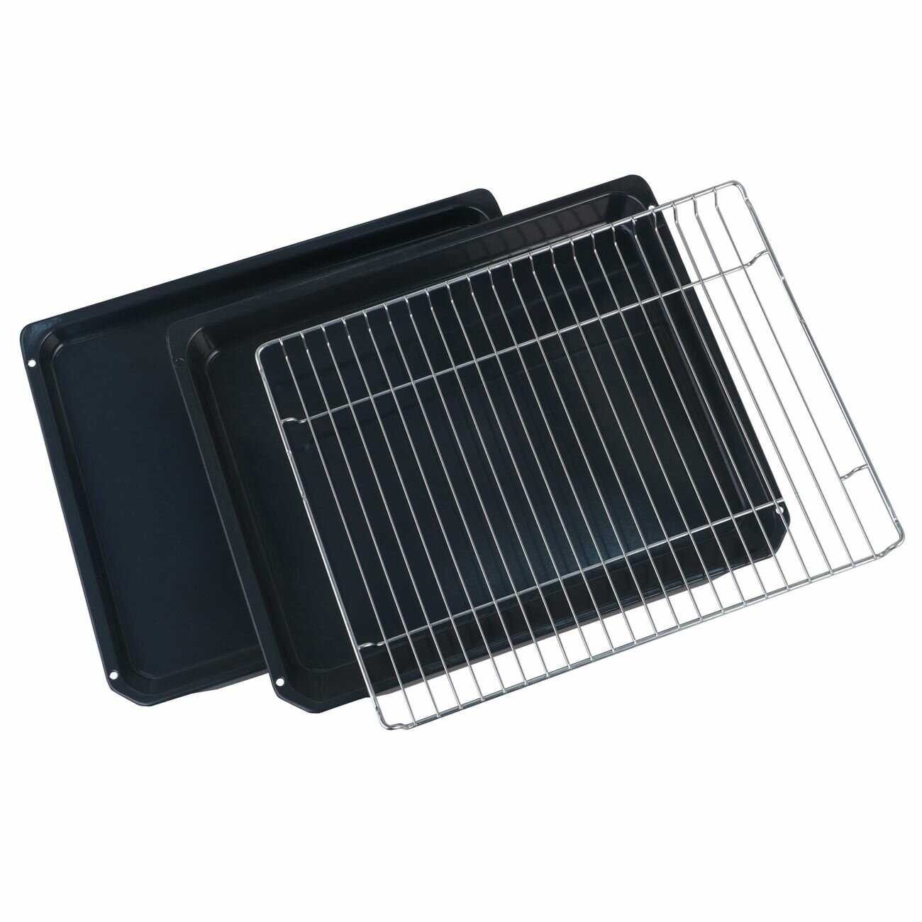 В комплекте два противня, решетка с бортиками и глубокий лист для большого количества еды. Пользователи отмечают добротное качество аксессуаров, противни не сползают. Решетка удобна для гриля. Все необходимое для старта без допокупок. Отзывы хвалят комплектацию.
