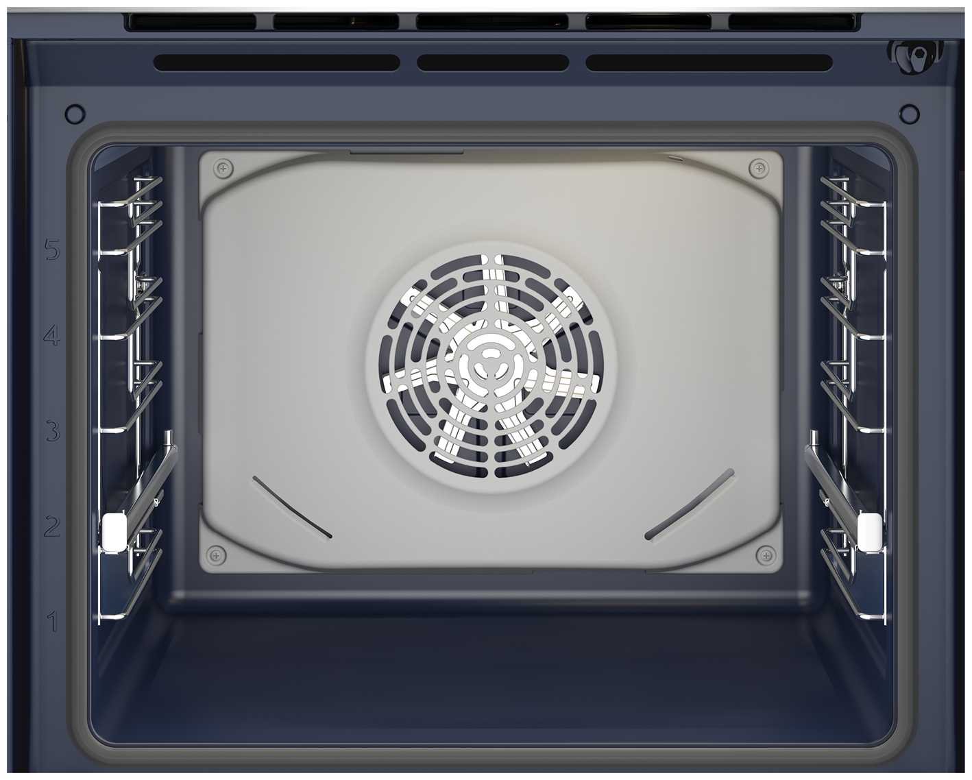 - Выдвижные направляющие позволяют легко доставать горячие противни одной рукой, минимизируя риск ожогов.