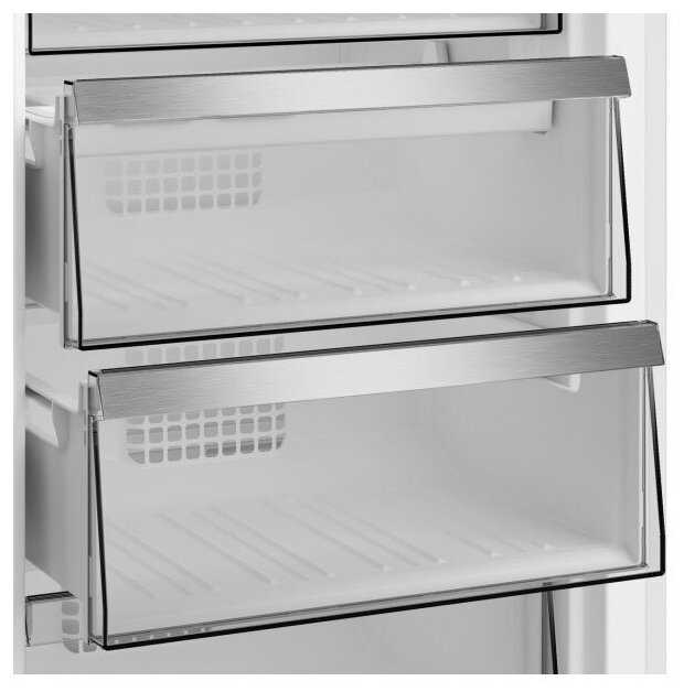 - 7 прозрачных ящиков с усиленными направляющими позволяют сортировать продукты по категориям (мясо, полуфабрикаты, овощи).