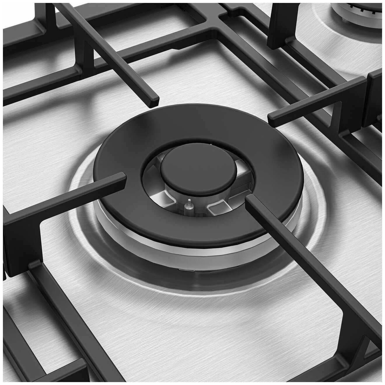 - + 5 конфорок, подойдет для посуды любого размера, газ подается стабильно, пламя ровное, есть газ-контроль.