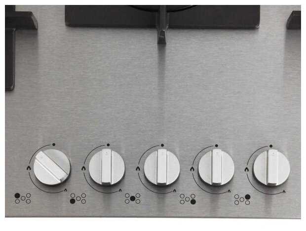- + На 5 конфорок, есть комфорка вок, автоматический электроподжиг встроен в поворотные ручки, газ-контроль