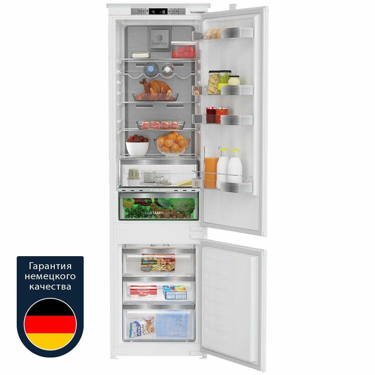 Общий полезный объем около 300 литров (часто указывается ~284 л холодильной камеры + морозильная). Многие пользователи, включая семьи из 4-6 человек, подчеркивают его исключительную вместительность как для встраиваемой модели, особенно отмечая просторную морозильную камеру и продуманное расположение полок.